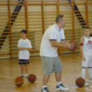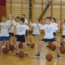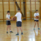 A 14 lelkes kisdiák próbálgatta a kosárlabda alapállás, a labdaátadások, kosárra dobások helyes végrehajtását.